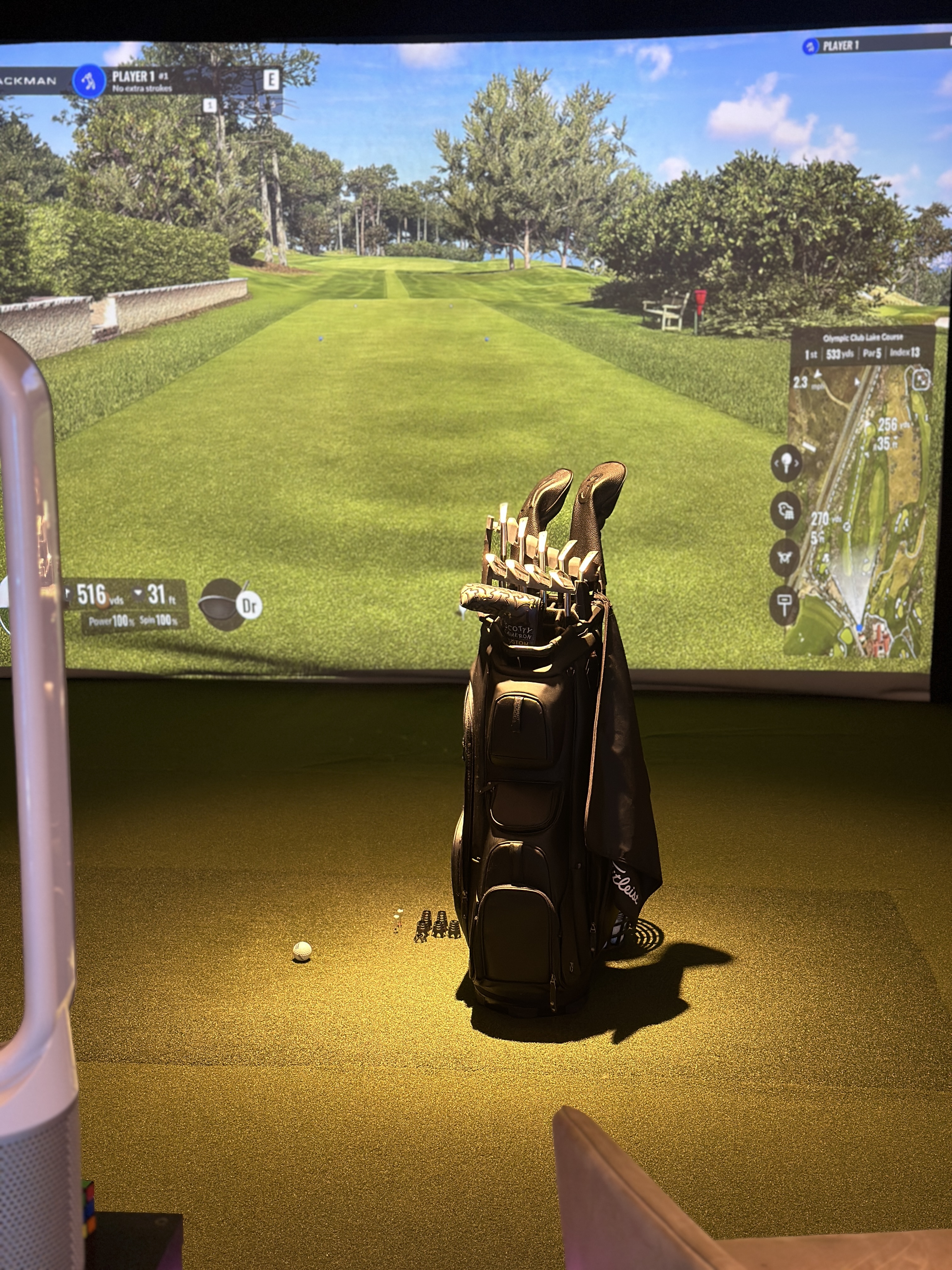 We use Trackman simulators with real-time ball tracking, analytics, and a range of top courses.